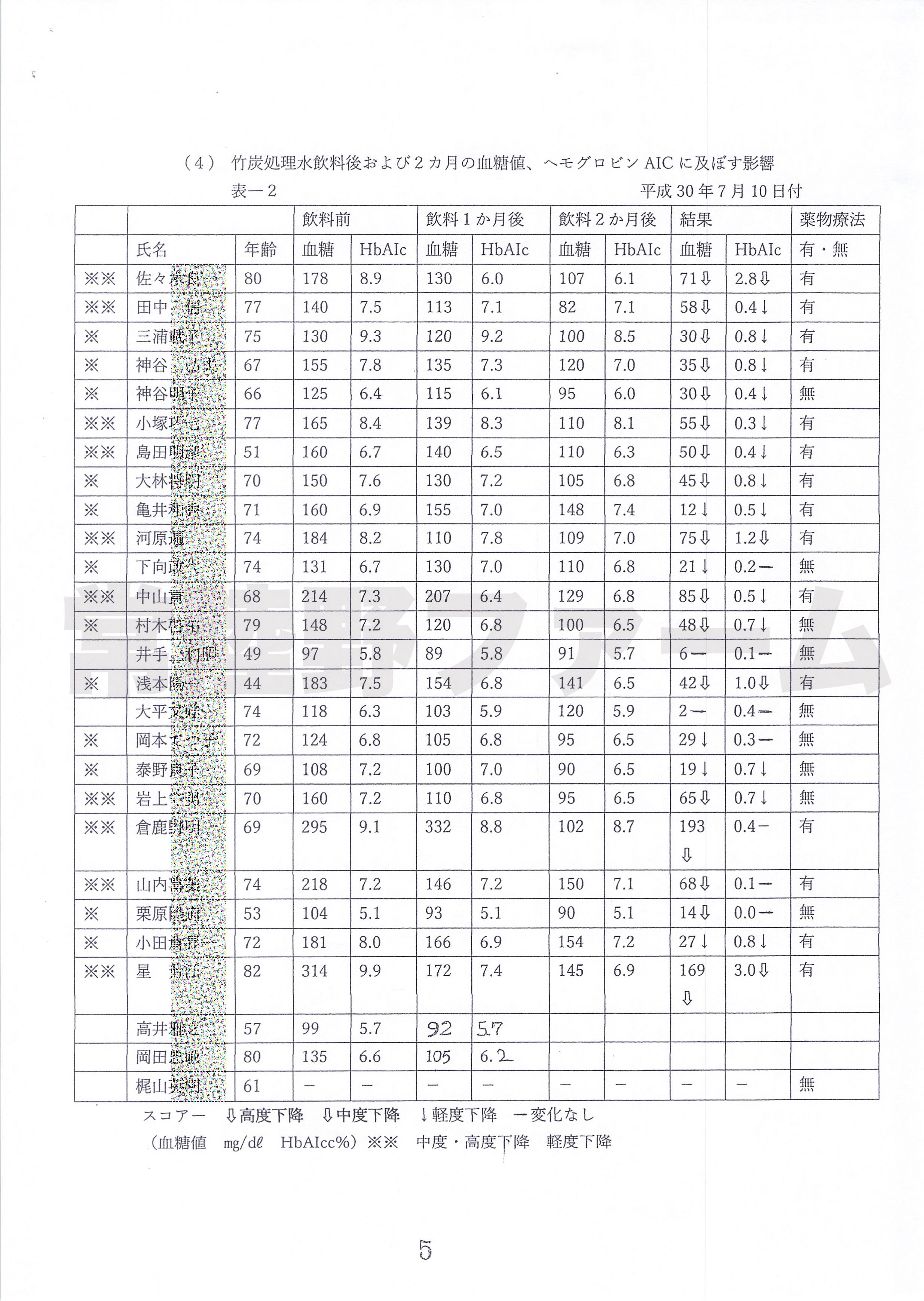 1)竹炭ナノカーボン処理飲料水によるヒト血糖値に及ぼす効果について