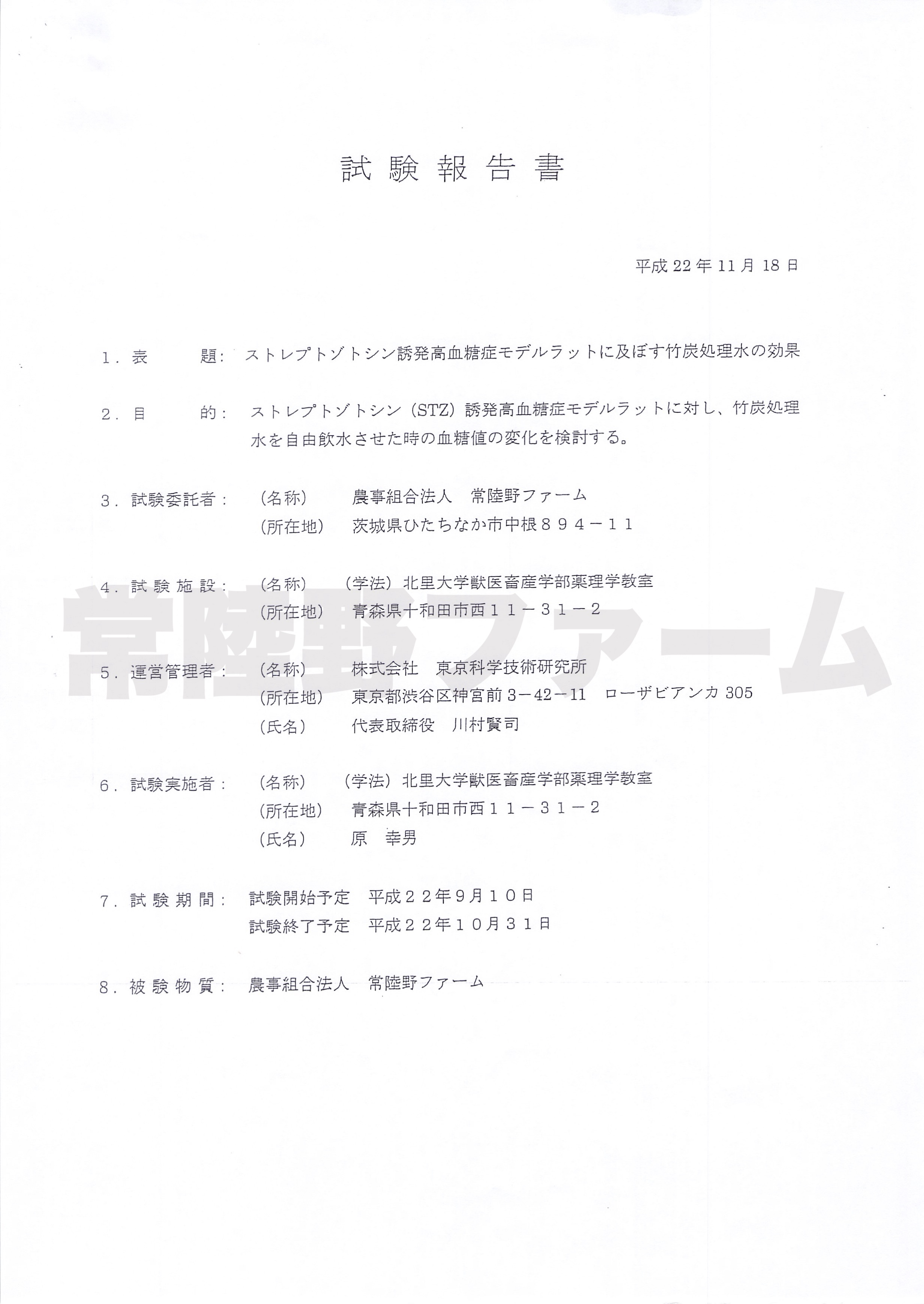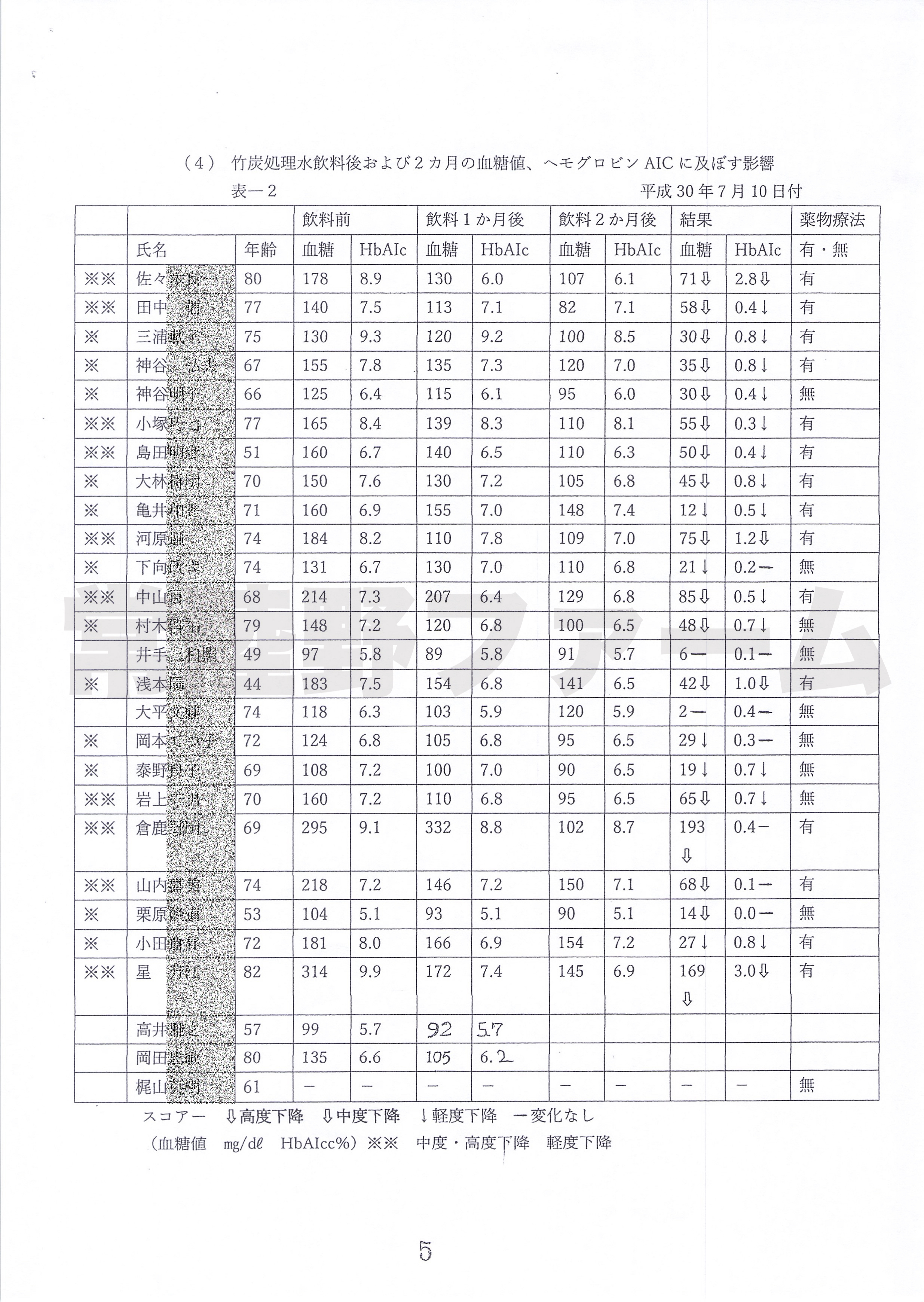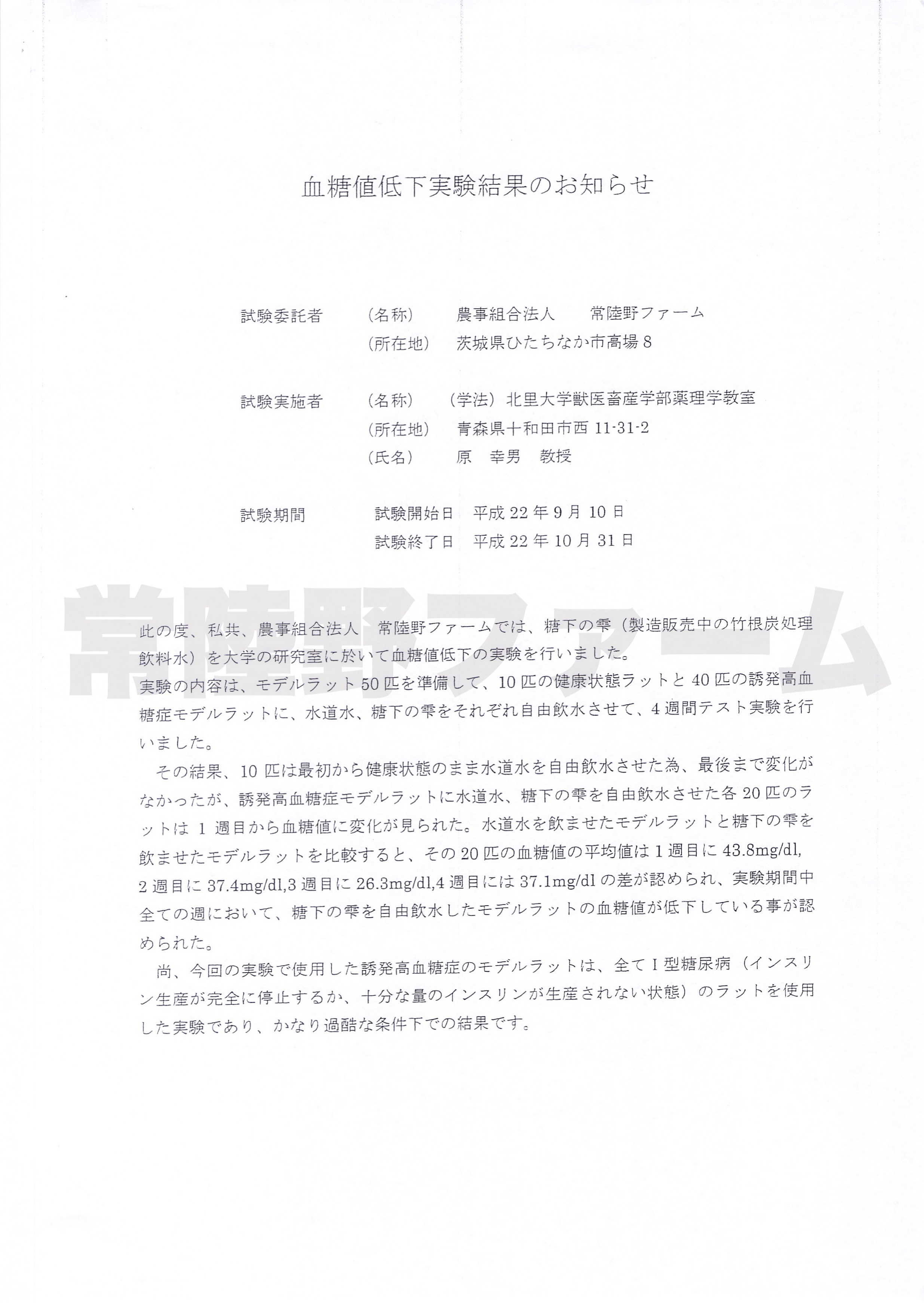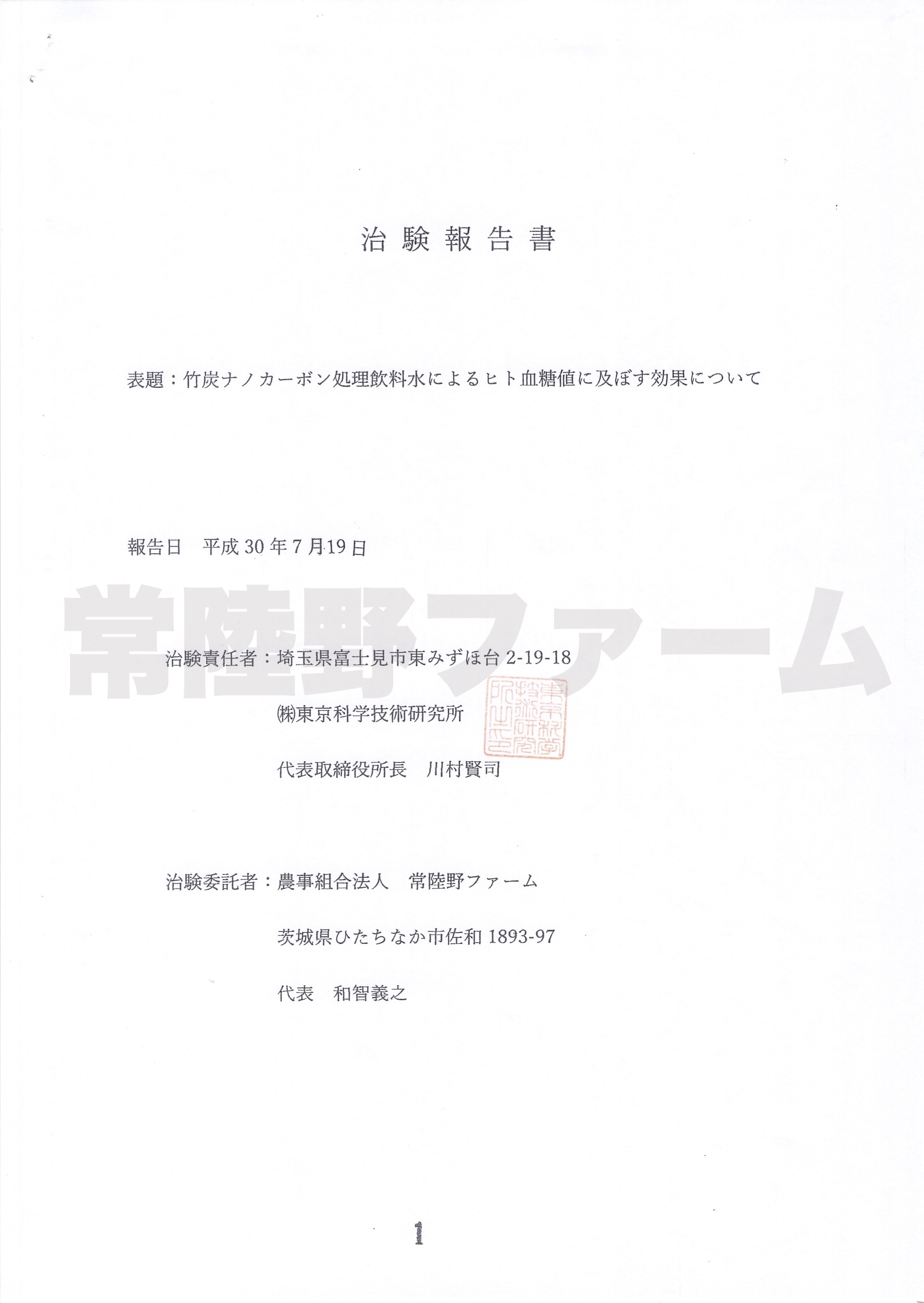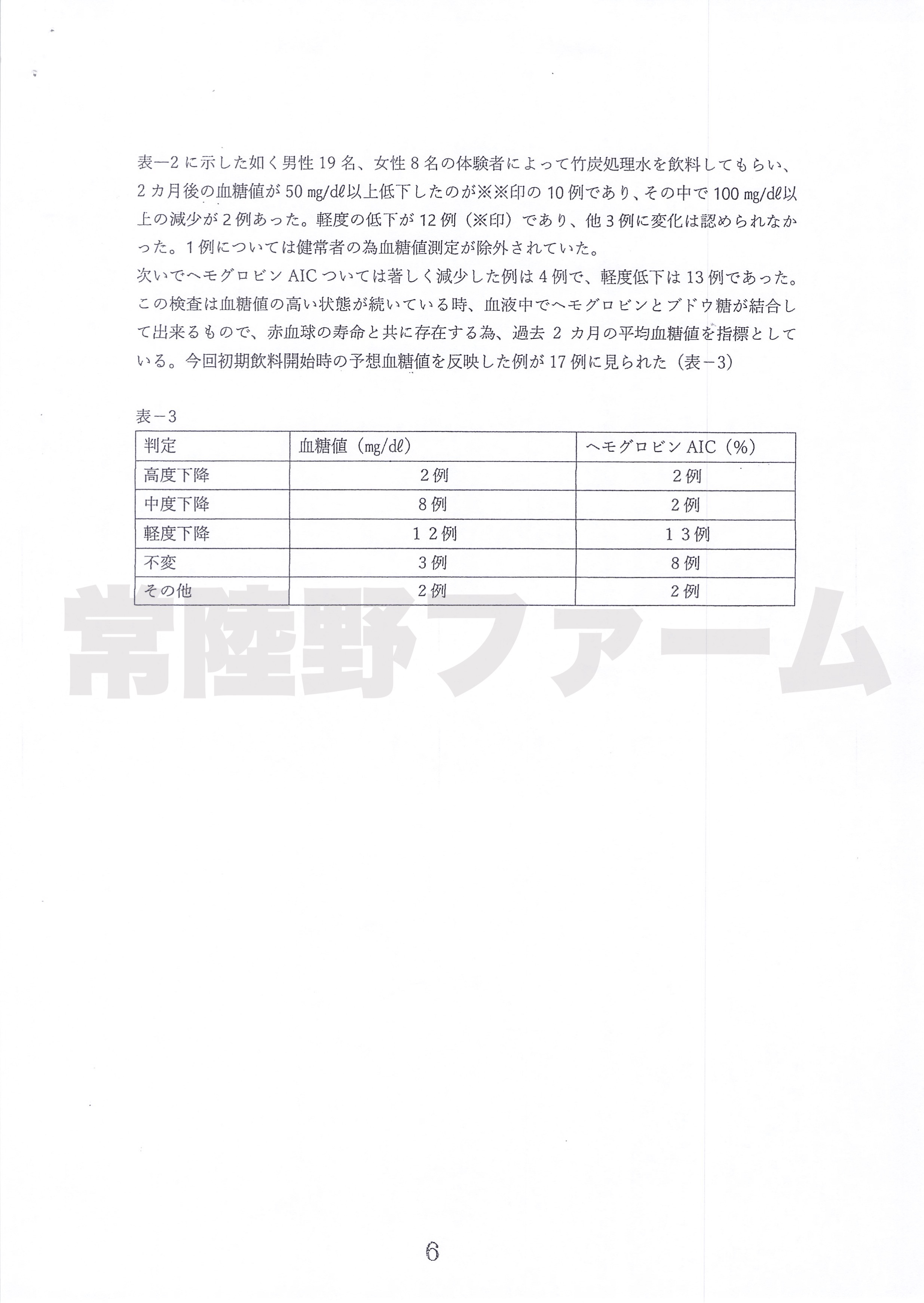 1)竹炭ナノカーボン処理飲料水によるヒト血糖値に及ぼす効果について