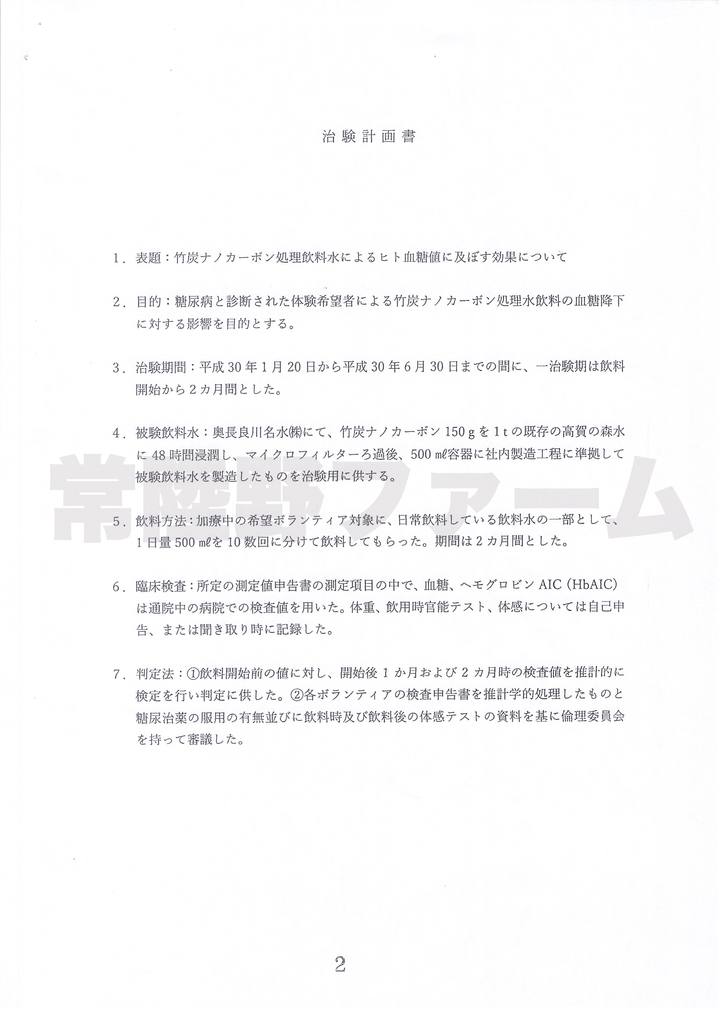 竹炭ナノカーボン処理飲料水によるヒト血糖値に及ぼす効果について