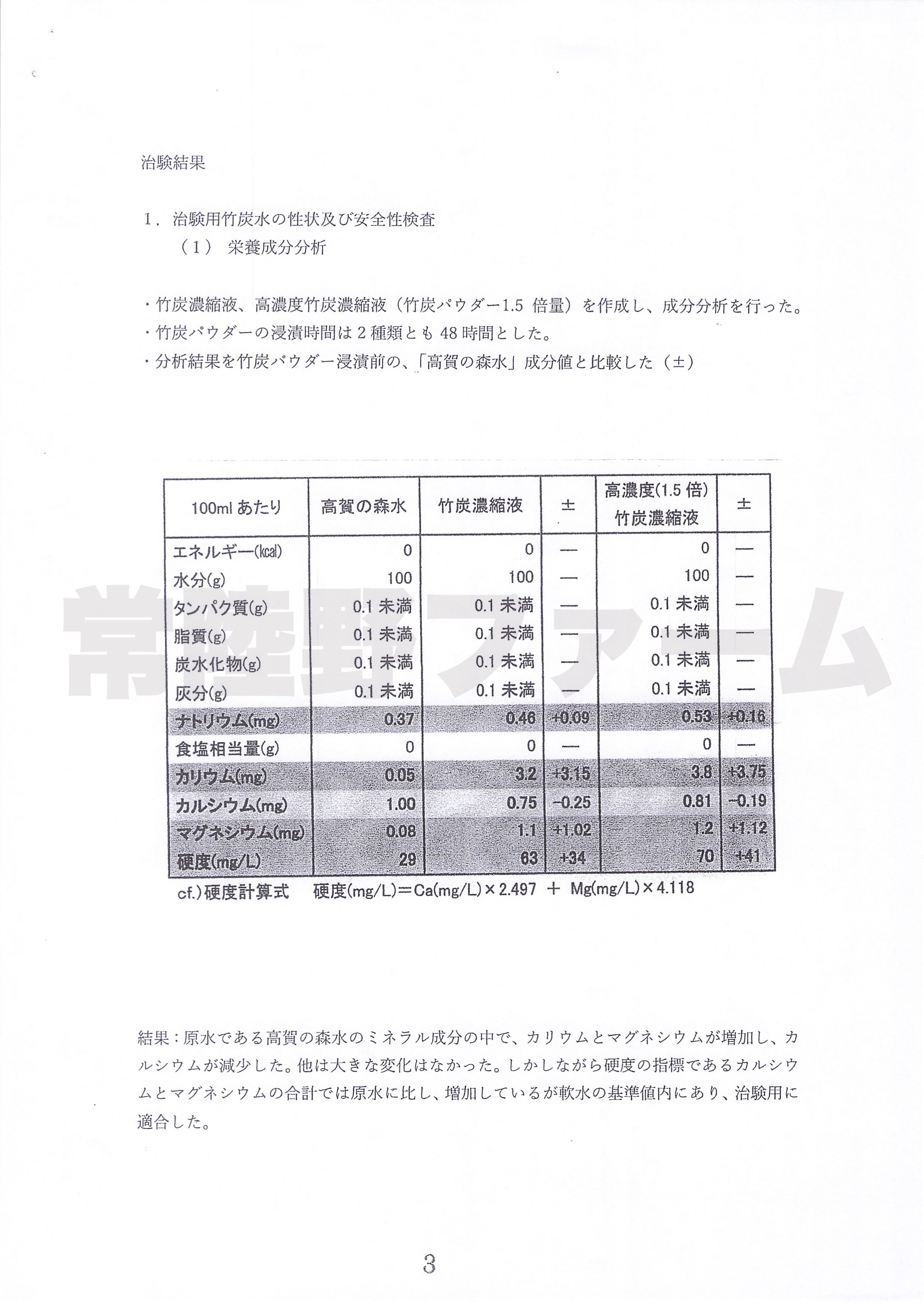 水内の不純物を一才ろ過し、一般の炭の遠赤外線が400倍、一般の水道水の水分子の1/300の大きさで、皮膚はもとより体内での浸透力は強い、この様々な効能を持つ「糖下の雫」