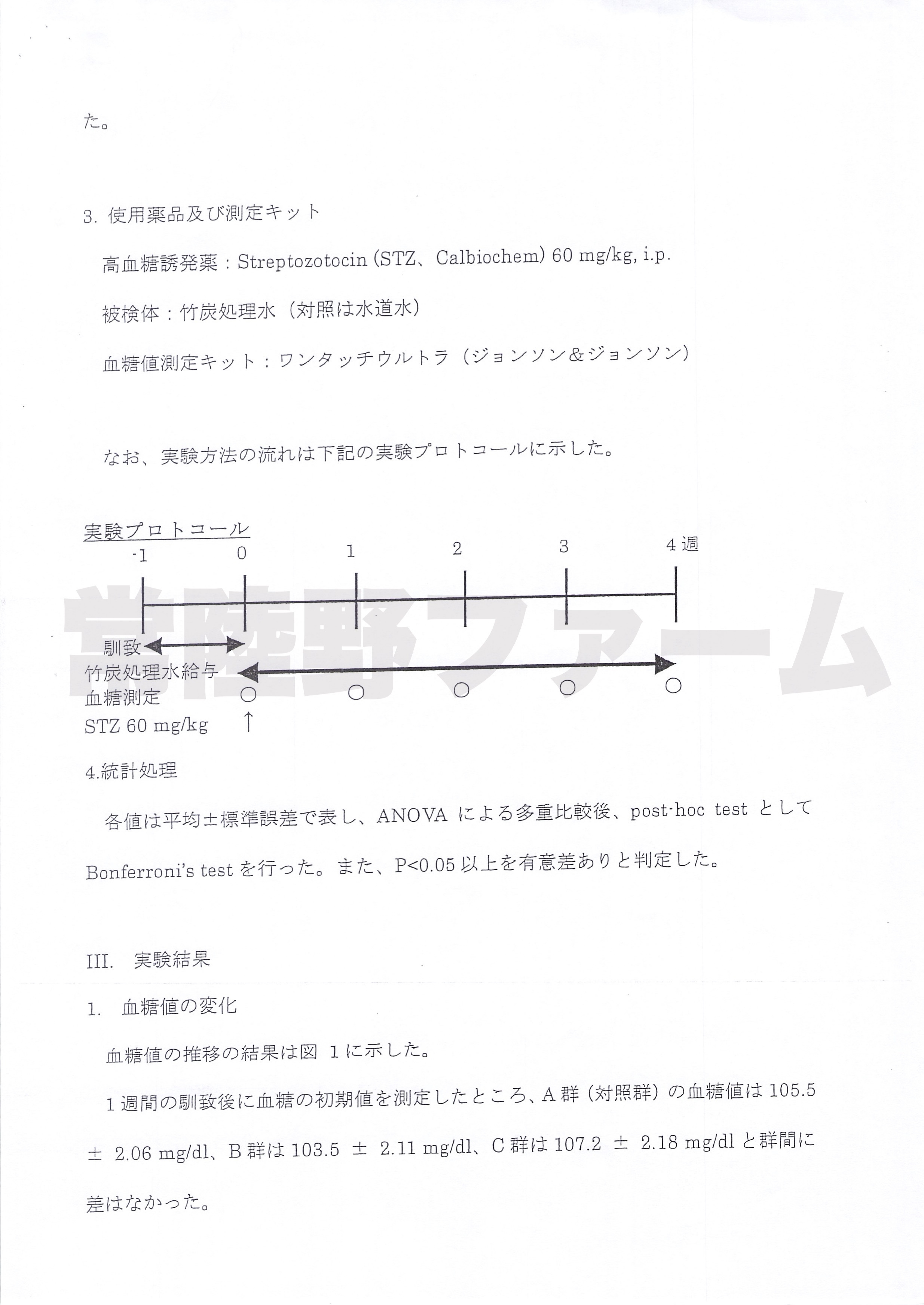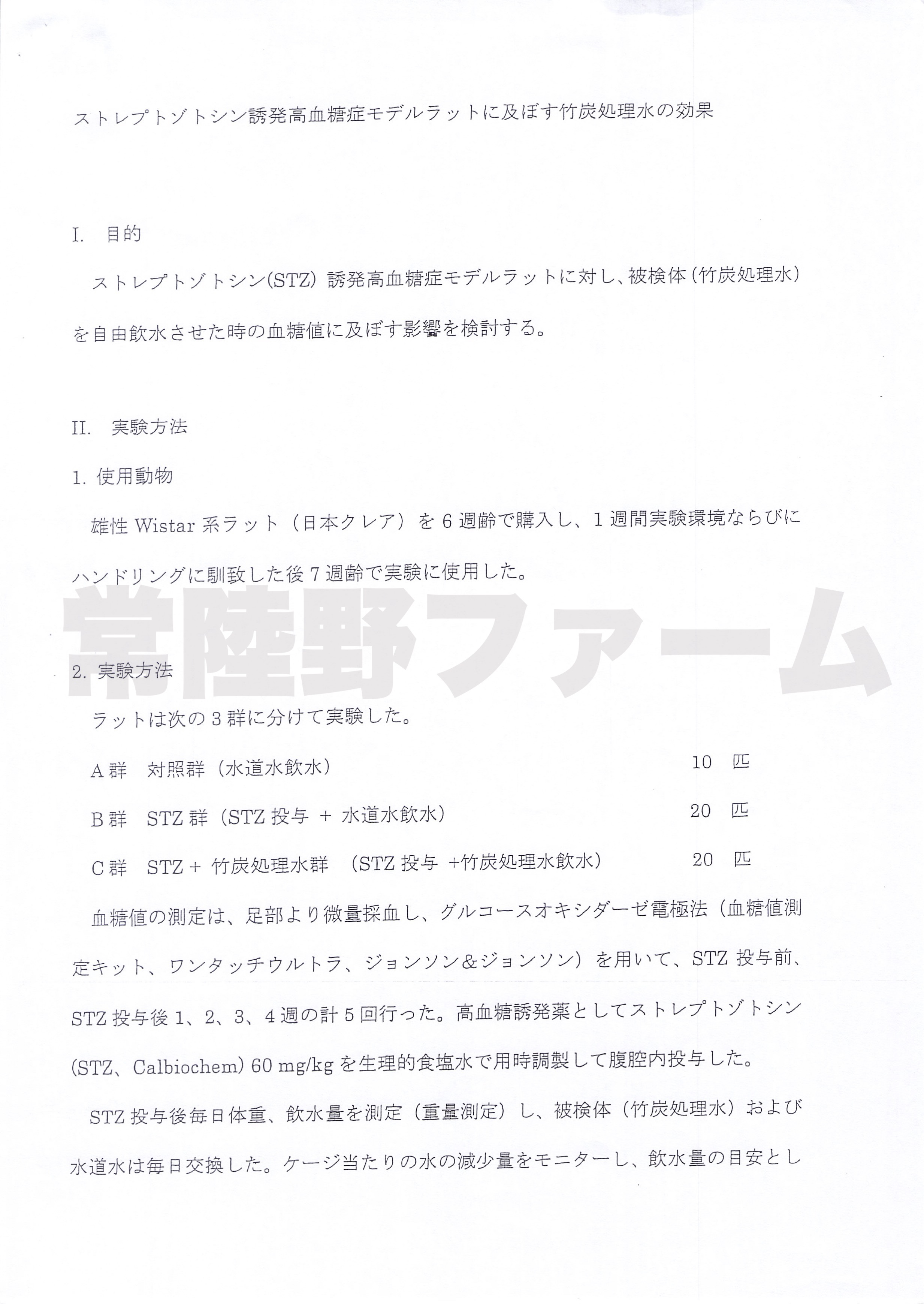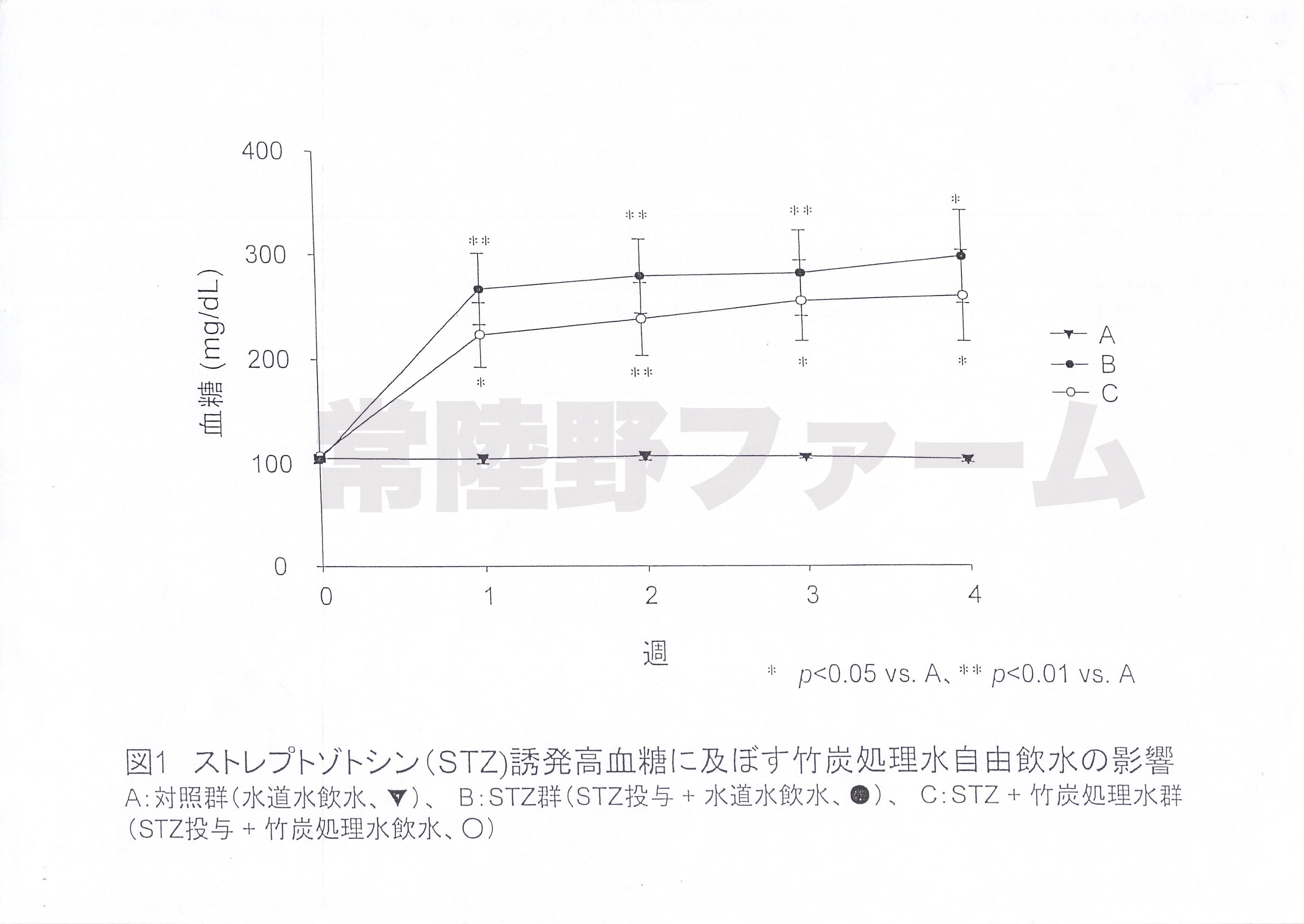 2)ストレプトゾトシン誘発高血糖症モデルラットに及ぼす炭処理水の効果